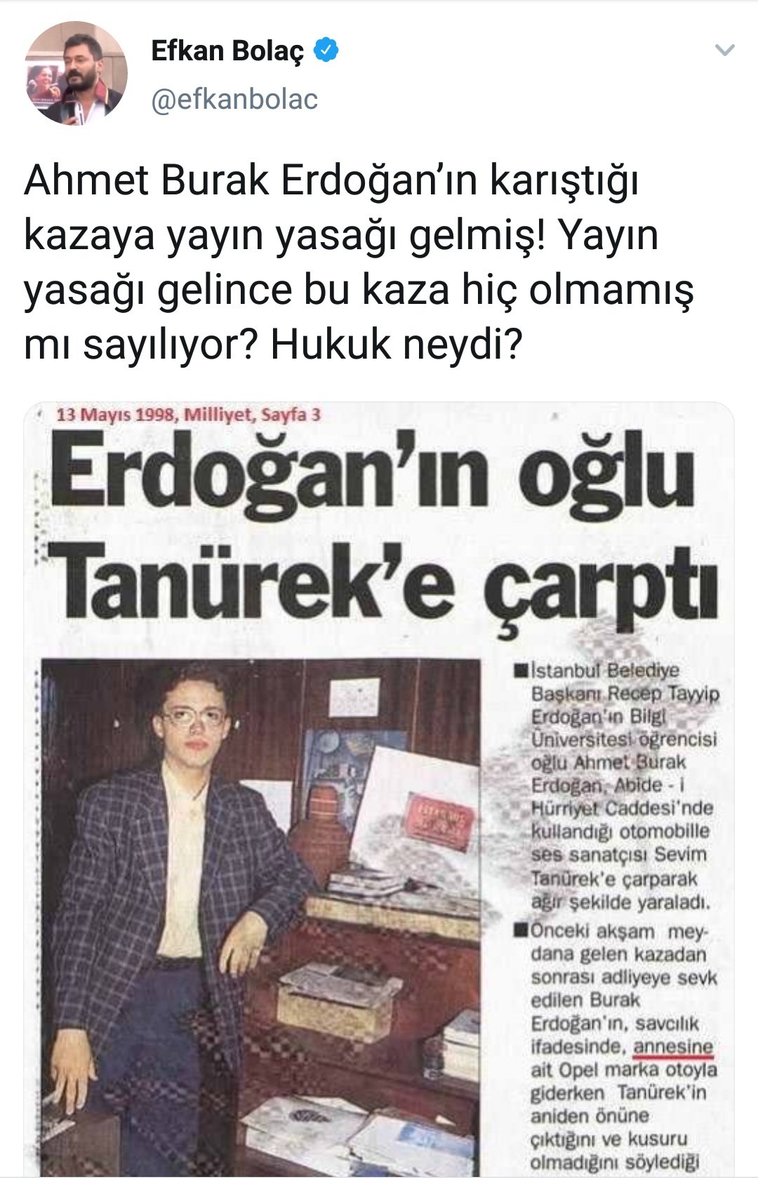 Kemal Ozkiraz V Twitter Erdogan In Oglu Burak Erdogan 1998de Bir Trafik Kazasi Yapiyor Carptigi Vatandas Oluyor 21 Yil Sonra Kaza Haberine Yayin Yasagi Geliyor Efkan Bolac Yasagi Elestiriyor Onun Twitine De Yasak